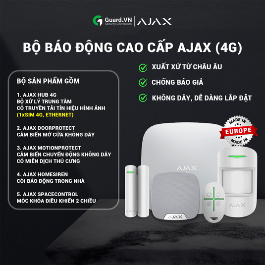 Ajax Systems là thương hiệu an ninh cao cấp với hệ sinh thái thiết bị chống trộm, báo cháy và tự động hoá mạnh mẽ. Sản phẩm Ajax nổi bật với độ tin cậy, công nghệ vô tuyến tiên tiến và thiết kế hiện đại. Guard.vn là nhà phân phối chính hãng tại Việt Nam, mang đến giải pháp an ninh chuẩn quốc tế cho mọi nhu cầu.