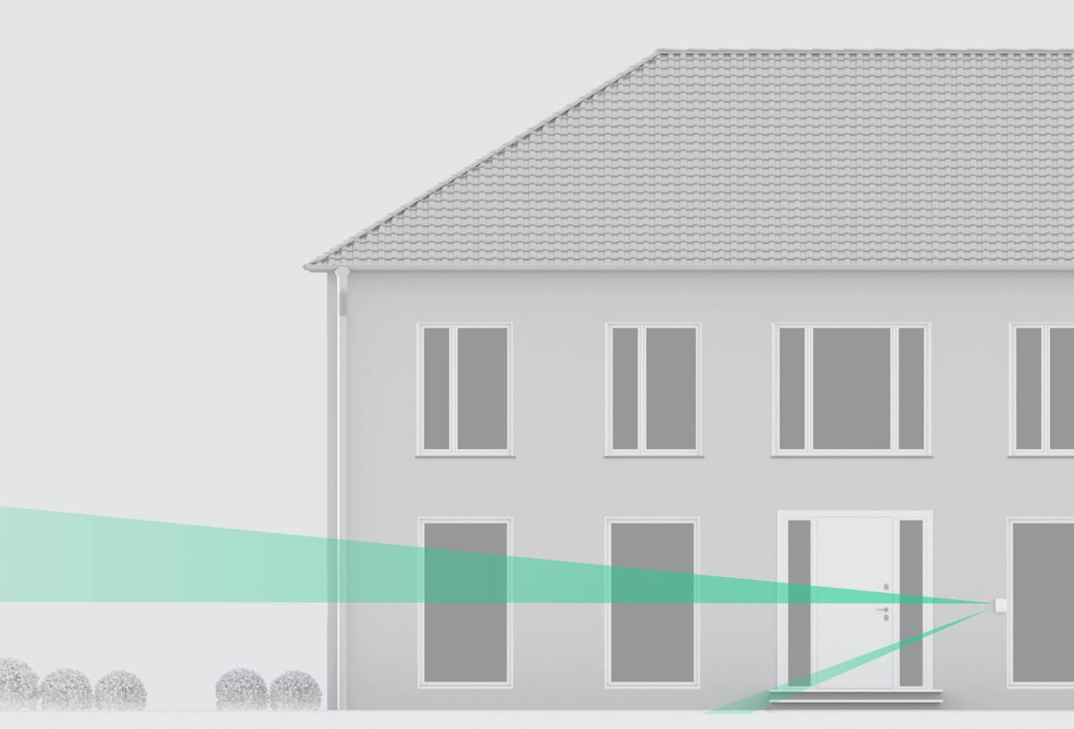 DualCurtain Outdoor tích hợp công nghệ mở rộng khu vực bảo vệ, một đặc điểm duy nhất trong các cảm biến chuyển động ngoại thất dạng rè. Khi tính năng Phát hiện Khu vực Gần được kích hoạt, cảm biến PIR trên cùng của bộ cảm biến nhận được một phạm vi nhìn hẹp bổ sung hướng xuống góc 40 độ so với phạm vi chính. Tính năng này cho phép cả hai cảm biến đều có thể phát hiện chuyển động khi một người vượt qua ranh giới bảo vệ gần cơ thể của bộ cảm biến, giải quyết vấn đề về "điểm mù," một vấn đề điển hình của các cảm biến này.