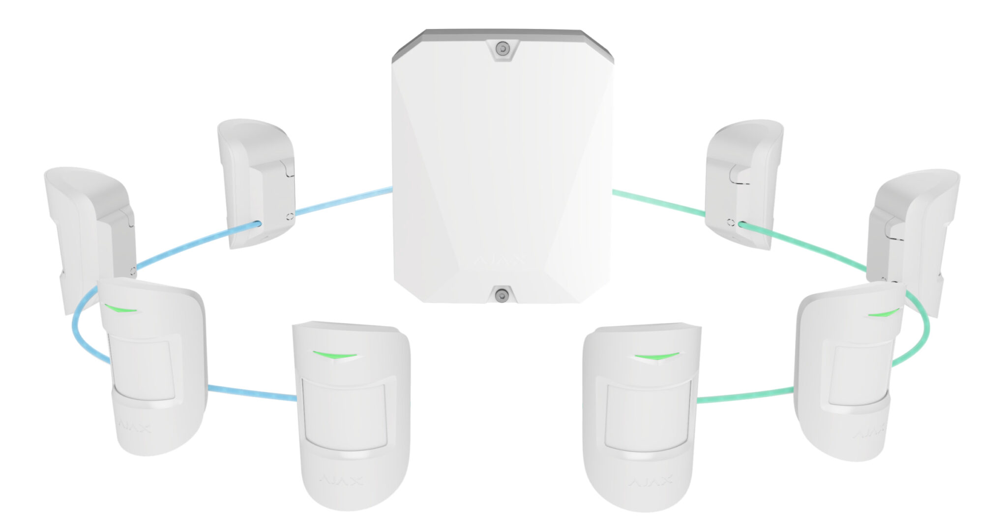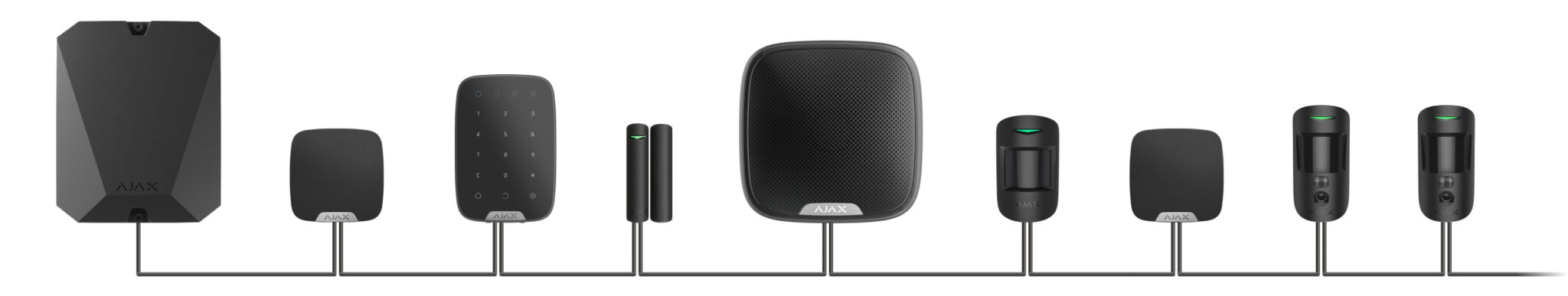 Cả hai kết nối đều tương thích với bất kỳ thiết bị Ajax Fibra nào: cảm biến mở cửa, cảm biến chuyển động với xác minh hình ảnh, hệ thống báo động, bàn phím v.v.