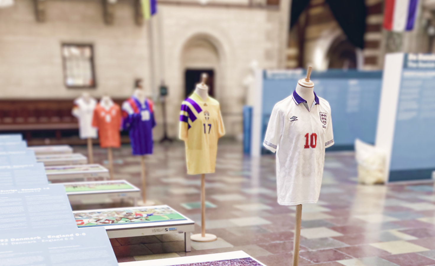 Hiện vật chính được trình bày tại triển lãm là các bộ đồ của các cầu thủ bóng đá nổi tiếng như Michel Platini, Gary Lineker, Eric Cantona, Frank Rijkaard, Michael Laudrup và nhiều người khác. Có thậm chí một hiện vật trưng bày chiếc chân bằng thạch cao của cầu thủ Đan Mạch Henrik Andersen. Anh đã gãy chân trong bán kết gặp Hà Lan trong EURO 1992. Và trong trận chung kết cùng năm đó, Đan Mạch đánh bại Đức 2-0 và giành chiếc cúp vô địch Châu Âu. Cúp trở thành trung tâm của triển lãm.