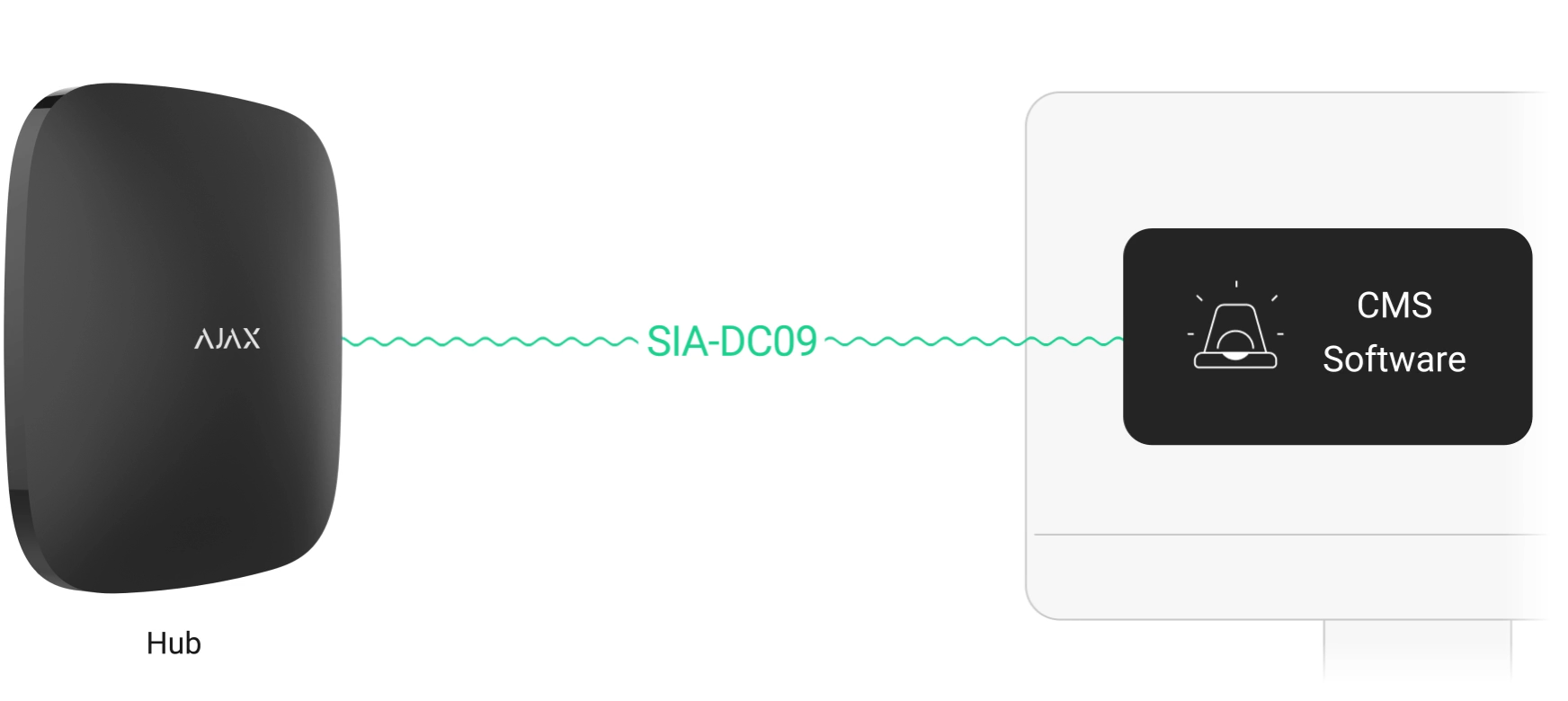 Hệ thống an ninh Ajax kết nối với nền tảng giám sát CAMS thông qua phần mềm giao tiếp Translator. Nó đảm bảo truyền tải các sự kiện của hệ thống đến trạm giám sát qua giao thức độc quyền SIA (DC-09) theo định dạng ADM-CID.