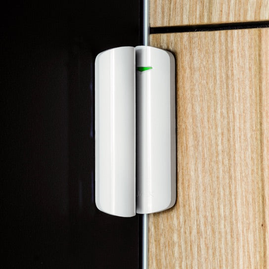 DoorProtect Jeweller là cảm biến phát hiện mở cửa không dây, được thiết kế để bảo vệ cửa ra vào, cửa sổ và giếng trời bằng cách phát hiện các hành vi xâm nhập hoặc cố gắng đột nhập. Thiết bị sử dụng công tắc từ (reed switch) sản xuất tại Anh, có độ bền lên đến hơn 2 triệu lần đóng/mở.