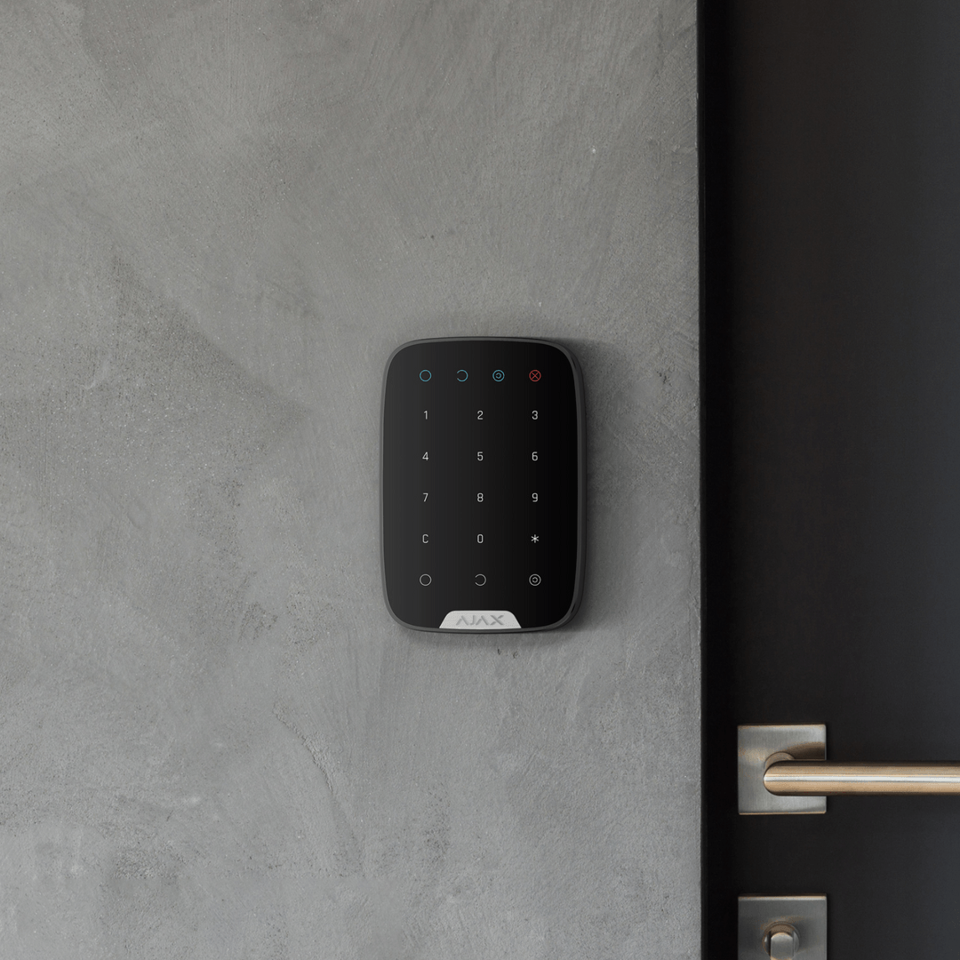 Bàn phím cảm ứng không dây dùng để kích hoạt hoặc vô hiệu hóa hệ thống an ninh Ajax. Thiết bị được lắp đặt bên trong phòng, gần cửa ra vào, giúp người dùng dễ dàng thao tác nhanh chóng.